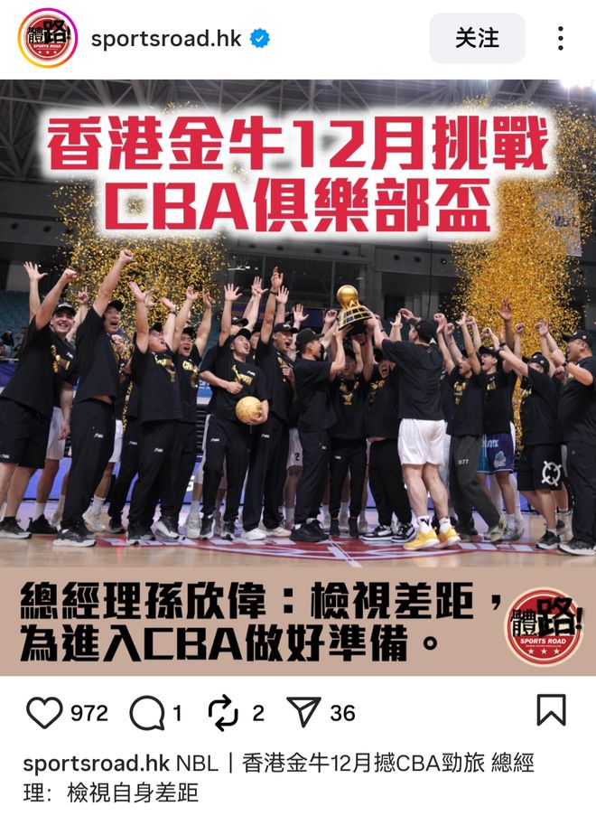 雷速体育10月18日讯 近日,第二届CBA俱乐部杯分组抽签结果出炉,来自NBL的香港金牛首次参赛。据中国香港媒体“体路”报道,香港金牛总经理孙欣伟谈到了球队本次俱乐部杯的目标。