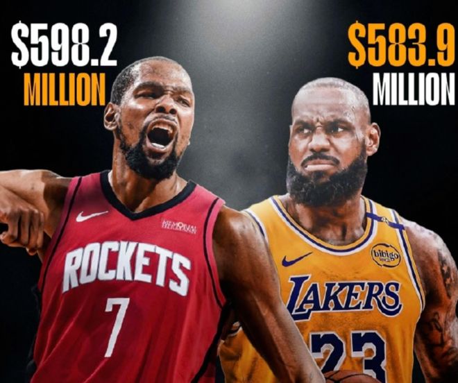 杜兰特虽然降薪续约,但签下这一份续约合同,也让他的NBA生涯总薪金达到了5.982亿美元,超越了詹姆斯的5.839亿美元,成为NBA史上总薪金最高的球员。