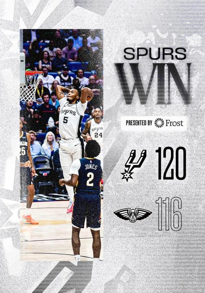 最终马刺120-116击败鹈鹕,拿下开赛两连胜,目前战绩高居西部榜首。