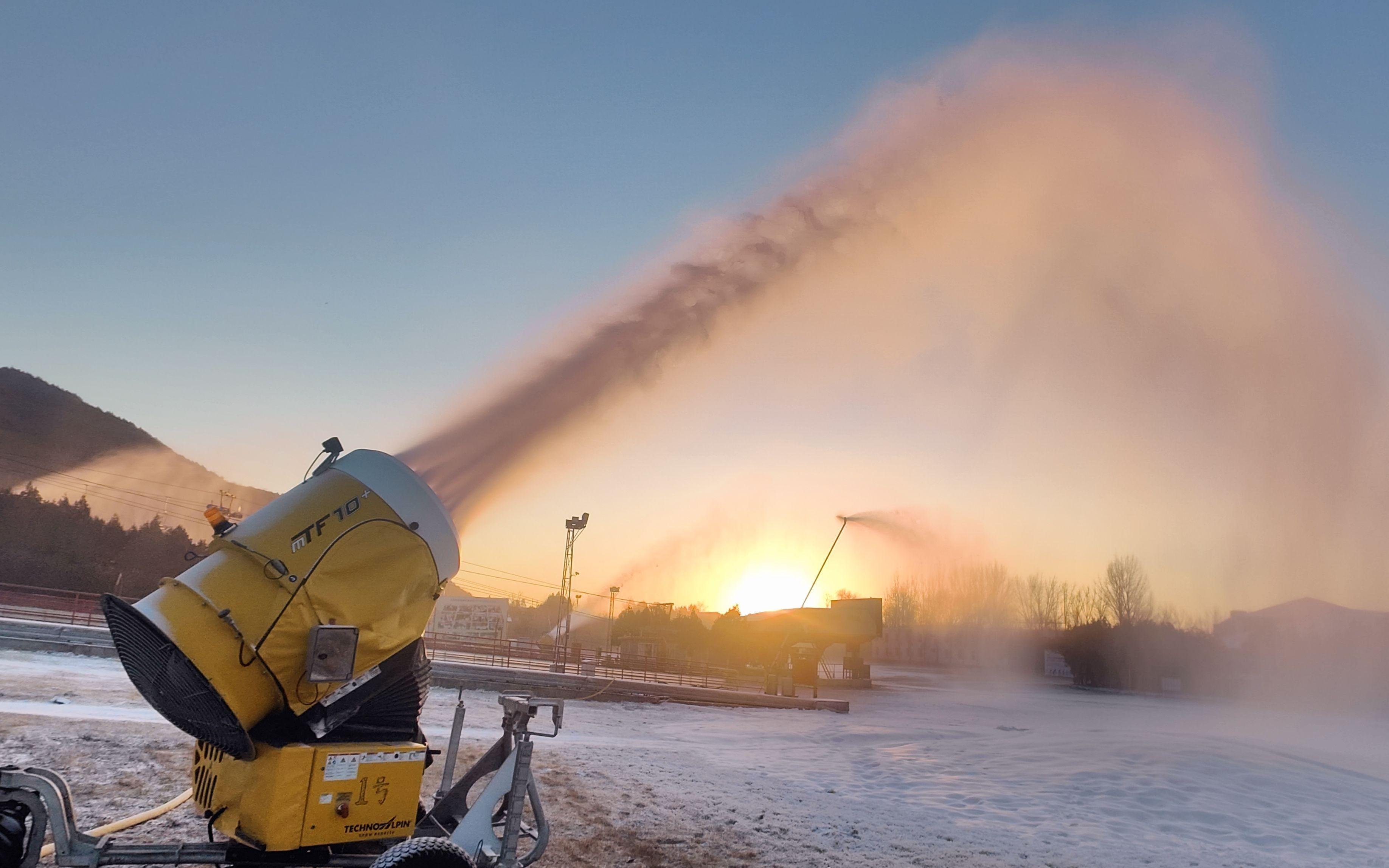 京郊滑雪场造雪机开足马力造雪,预计12月初集中开板