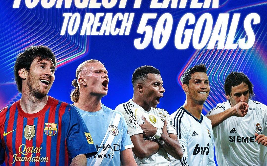 欧冠最年轻50球排名:梅西居首,哈兰德姆巴佩分列二三
