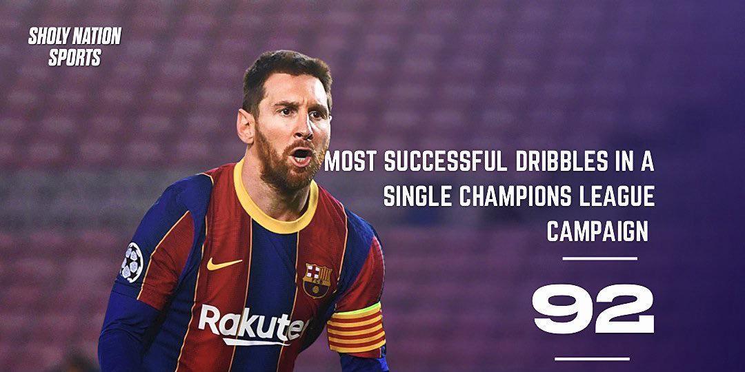 梅西是欧冠盘带历史第一、第二、第三、第四!