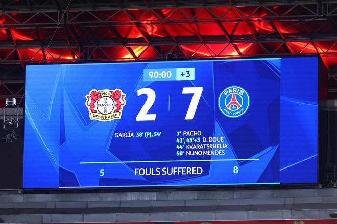 北京时间10月22日凌晨,新赛季的欧冠开启联赛阶段第3轮的较量,勒沃库森大战卫冕冠军巴黎圣日耳曼。此役巴黎圣日耳曼完全不留情面,全场狂轰7粒进球,最终巴黎圣日耳曼7-2大胜勒沃库森。