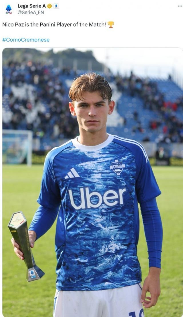 本场比赛帕斯率先破门,赛后他也当选意甲官方评选出的本场最佳球员。