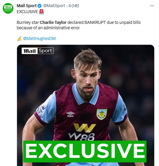 1月6日讯 据每日邮报消息称,伯恩利后卫泰勒由于未付账单被宣布破产,这名30岁的后卫在伯恩利的周薪是3万英镑。去年他就被申请了强制破产令,目前正在申请撤销。
