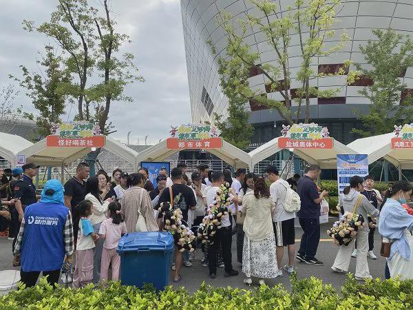 以盐城为例,记者在盐城站一下高铁,就根据指示和工作人员的提醒,找到了直达盐城奥体中心的球迷免费巴士。巴士间隔时间为15分钟,工作人员甚至都不需要查验记者的球票,仅凭记者身着的盐城队球衣,便引导记者上车。在下午3点抵达盐城奥体中心时,记者看到长长的市集摊位已经摆起,餐饮、文创、纪念品、非遗、景区宣传等各类产品已在迎接来客。