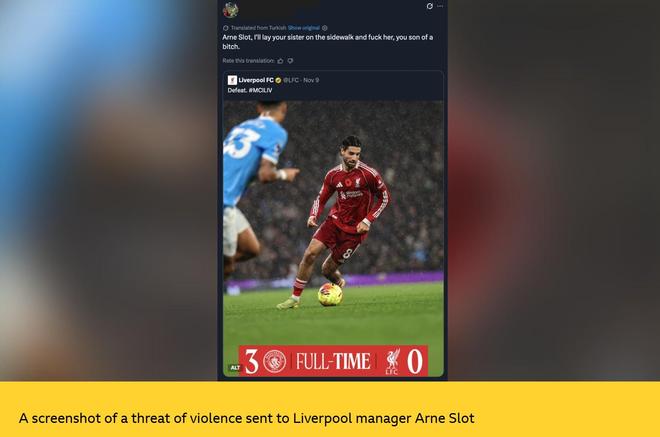 教练成为比球员更易受攻击的目标,82%的辱骂信息来自X平台(原推特)。