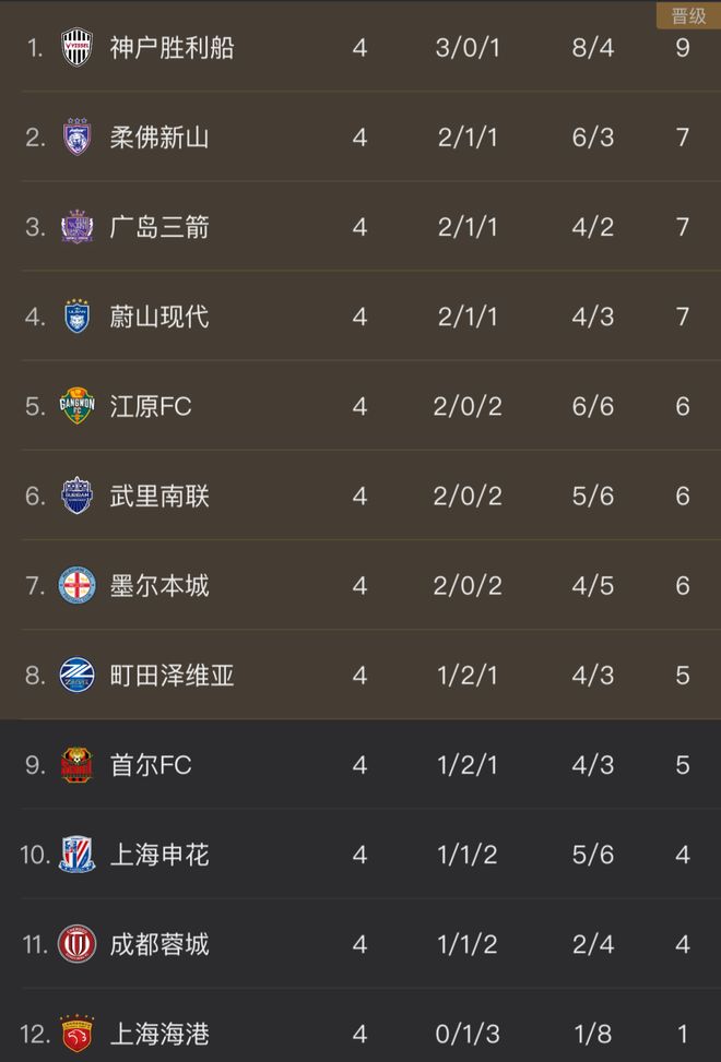 本场1-3告负后,1胜1平2负的申花跌至第10位,而同积4分的蓉城则排名第11,至今未胜的中超冠军上海海港则是0胜1平3负积1分排名小组垫底。中超球队稍有不慎,可能面临本届亚冠淘汰赛全军覆没的风险。